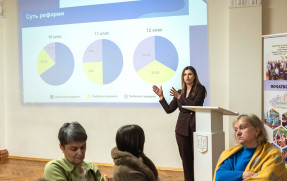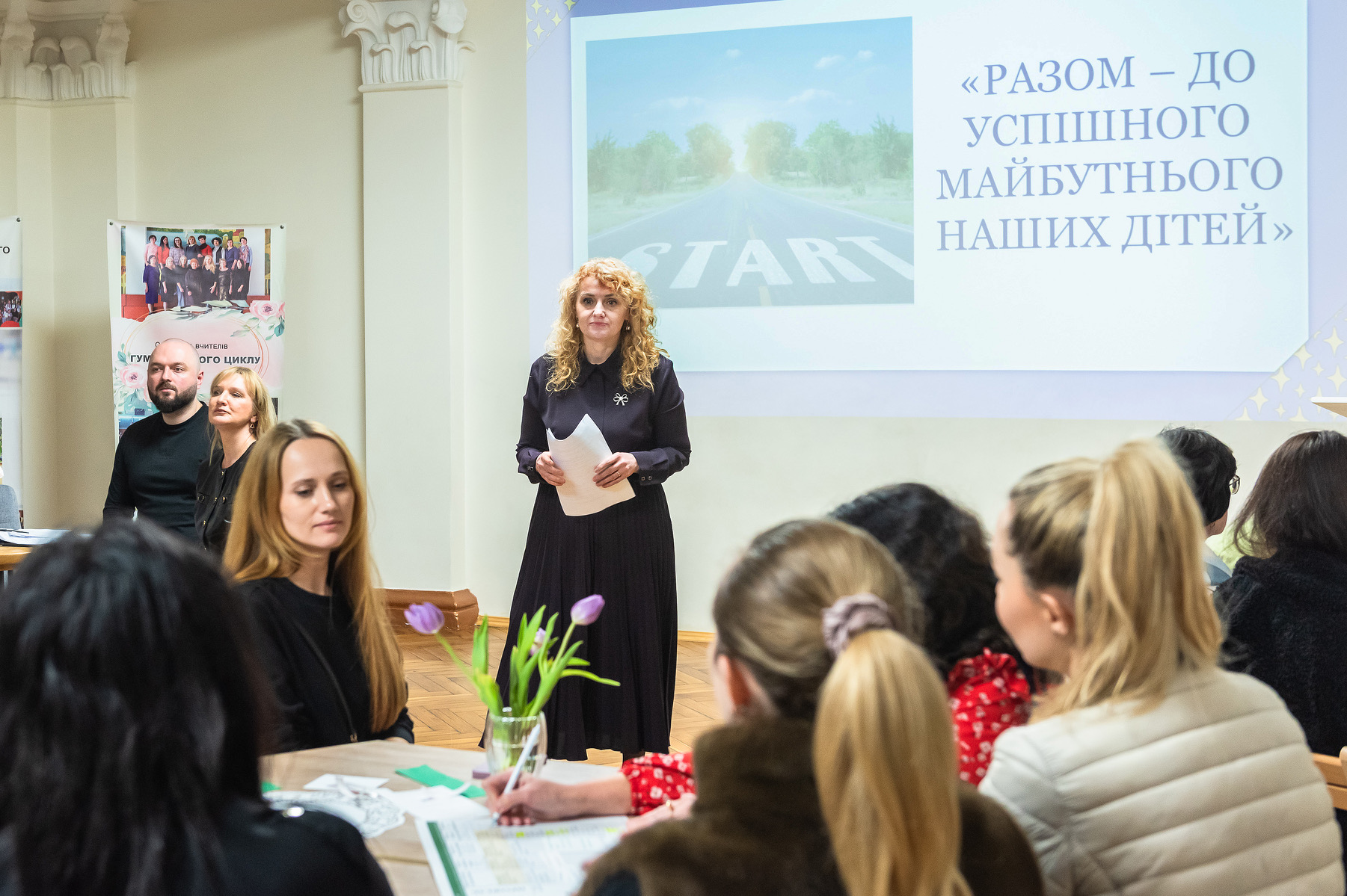 Директор школи Руслана Петрокушин зупинилася на особливостях профільної освіти та нормативних документах, розроблених Міністерством освіти і науки України.
